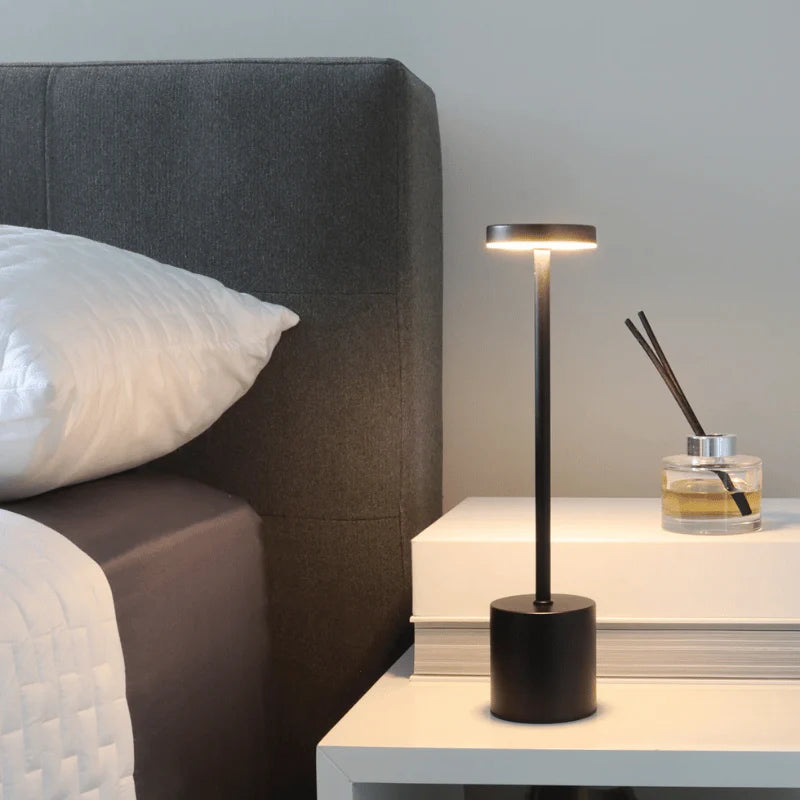 This black LED touch lamp is sleek and modern, easily lighting up with a touch. Its minimalist design makes it a stylish addition to your bedside, desk, or living room. Adjustable brightness allows for customized lighting.