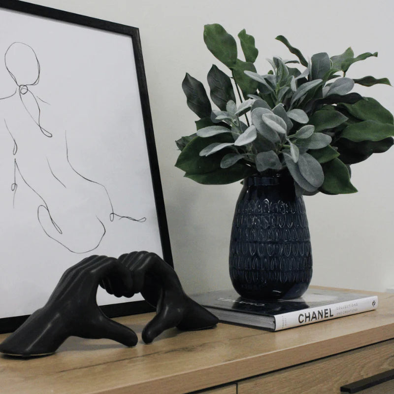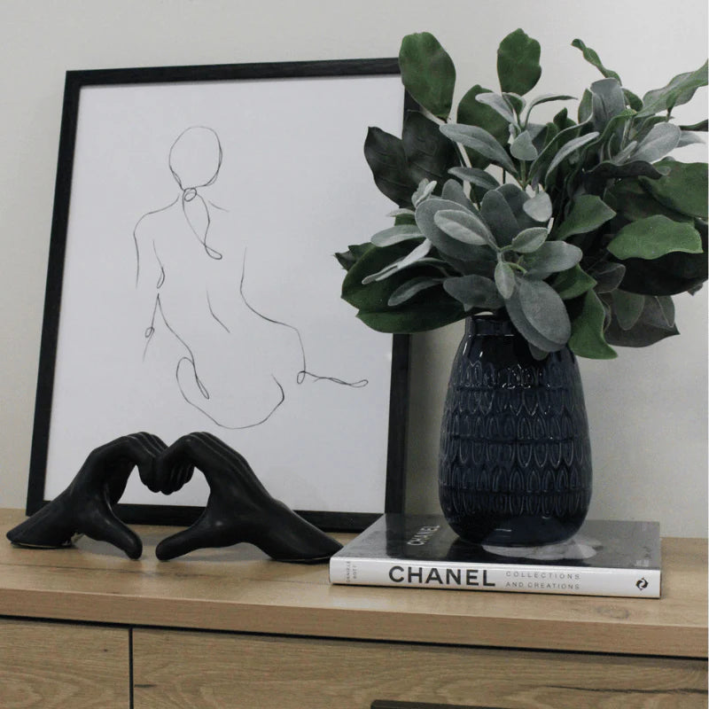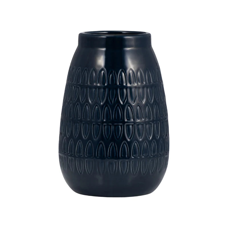Add modern design charm to your home with this navy embossed ceramic vase. This playful and unexpected vase is the perfect addition to any home decor.