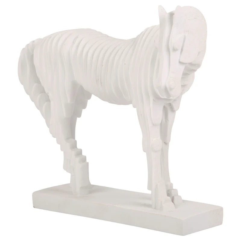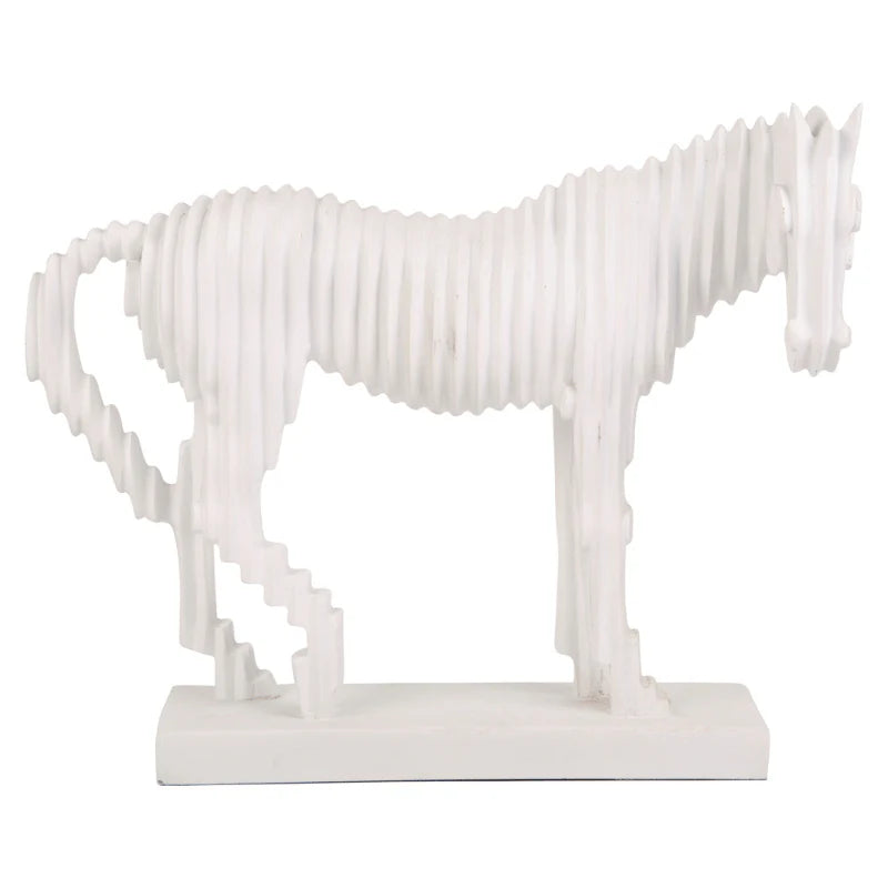 This white geometric horse statue, with its sleek, sculptural form, adds a modern twist to the classic horse silhouette. Crafted in a crisp white with clean, faceted lines, it adds a touch of modern elegance to a shelf, desk, or console table. Perfect for a minimalist home or a striking addition to an eclectic space, it embodies strength, elegance, and sophistication.